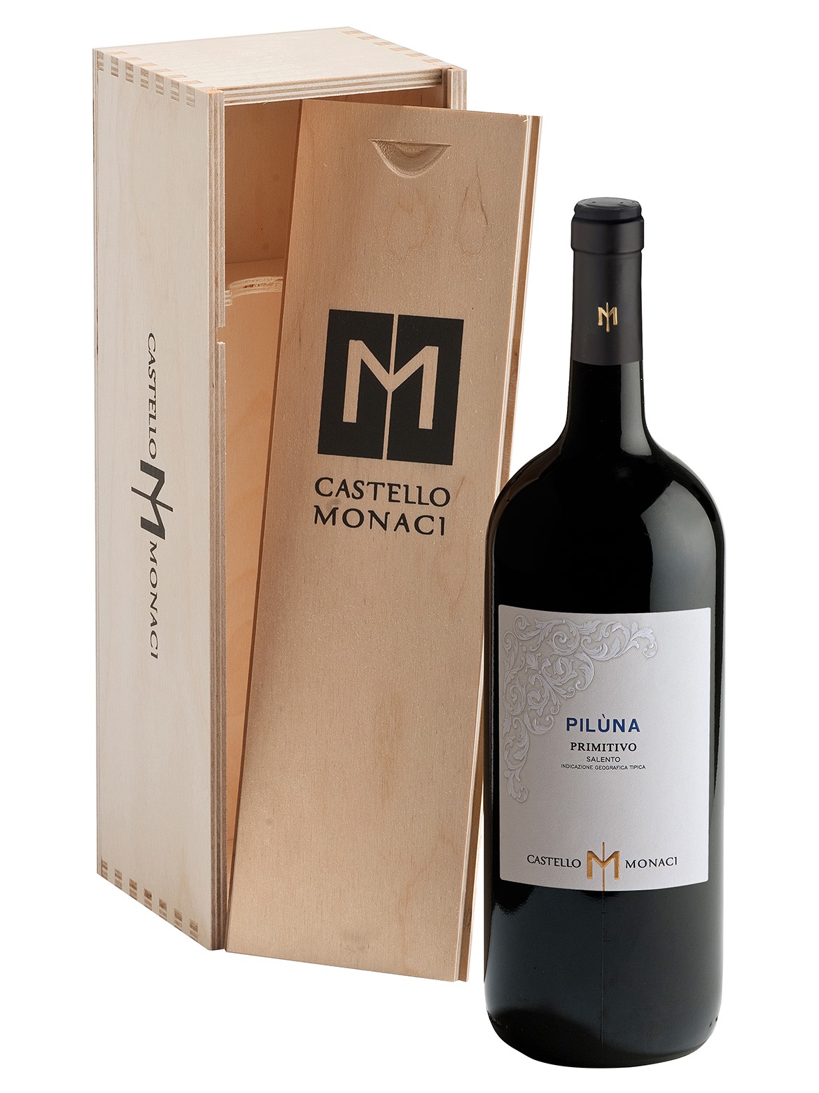 Piluna là một loại rượu vang được sản xuất tại nhà máy rượu Castello Monaci. Nó được sản xuất bằng nho Primitivo thu hoạch từ những vườn nho trồng cây giống Apulian và Guyot trên đất sét sâu và khô với sự hiện diện của đá vôi tuffaceous, trong khu vực Salice Salentino ở tỉnh Lecce. Việc thu hoạch chỉ được thực hiện bằng tay từ tờ mờ sáng đến chín giờ sáng, khi nhiệt độ mát hơn.