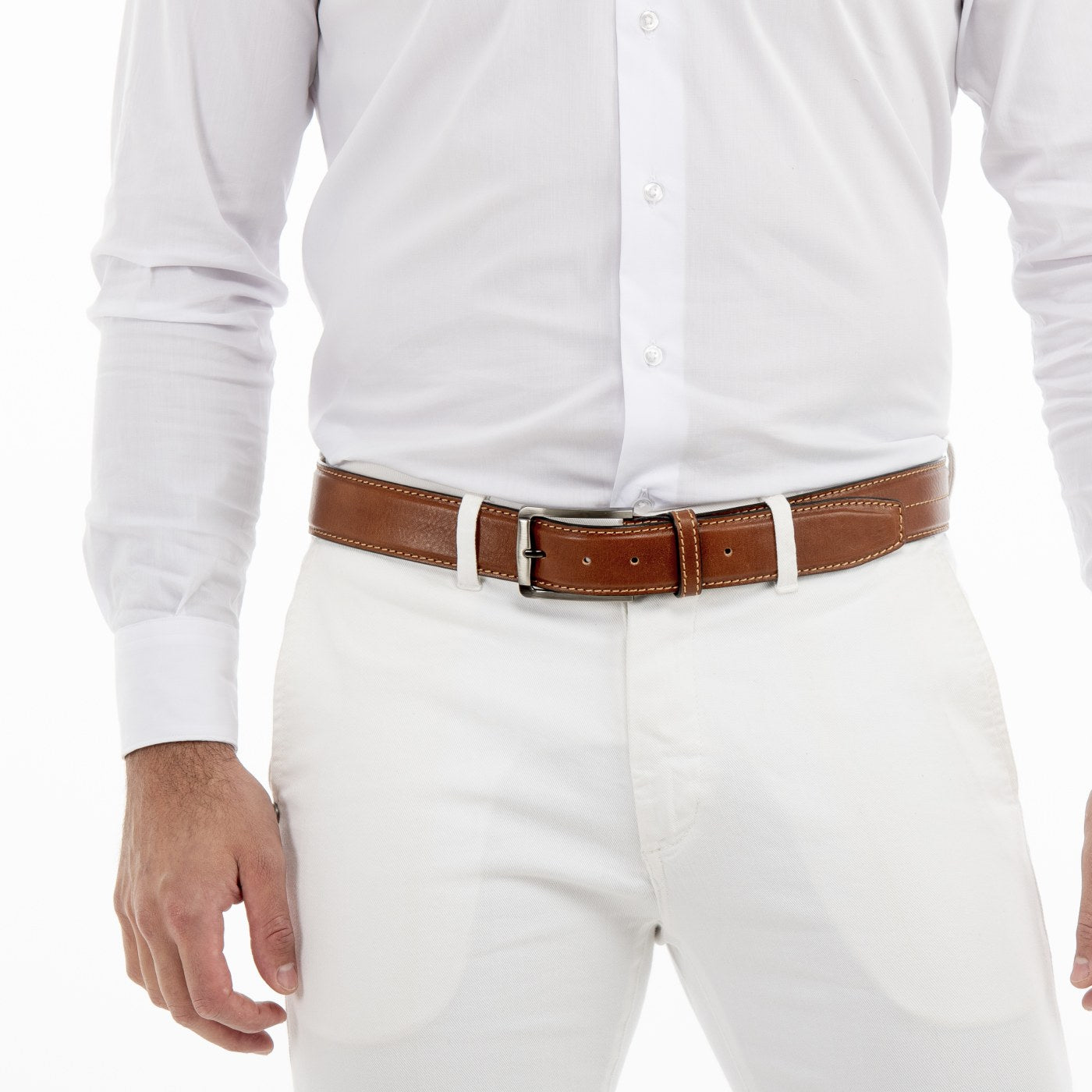 Thắt lưng Gary là loại thắt lưng da (da bò) thật, màu cognac.