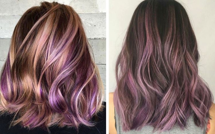 Để tạo điểm nhấn cho mái tóc, bạn có thể lựa chọn màu tóc nâu tây kết hợp với đường highlight màu tím. Màu tóc này không chỉ độc đáo khi bạn đi dưới ánh nắng mà còn làm nổi bật vẻ đẹp huyền bí và quyến rũ. Nhờ vào những sợi tóc tím phản chiếu ánh sáng trên nền tóc màu nâu.