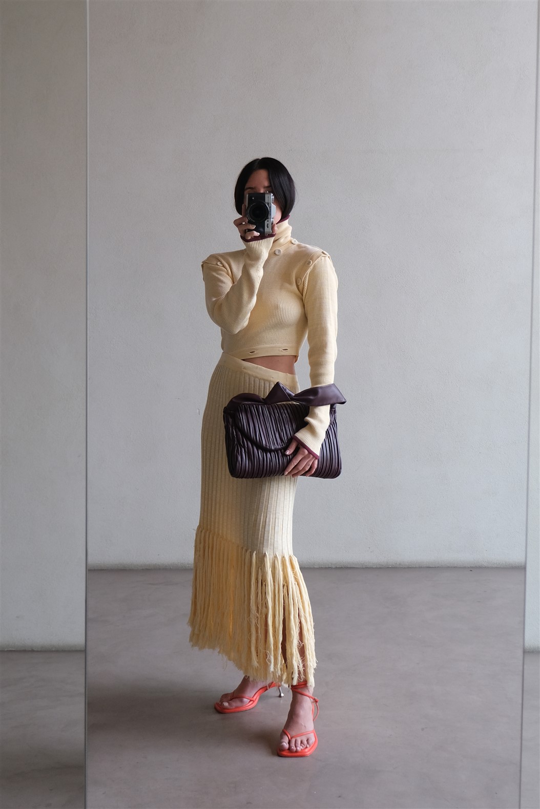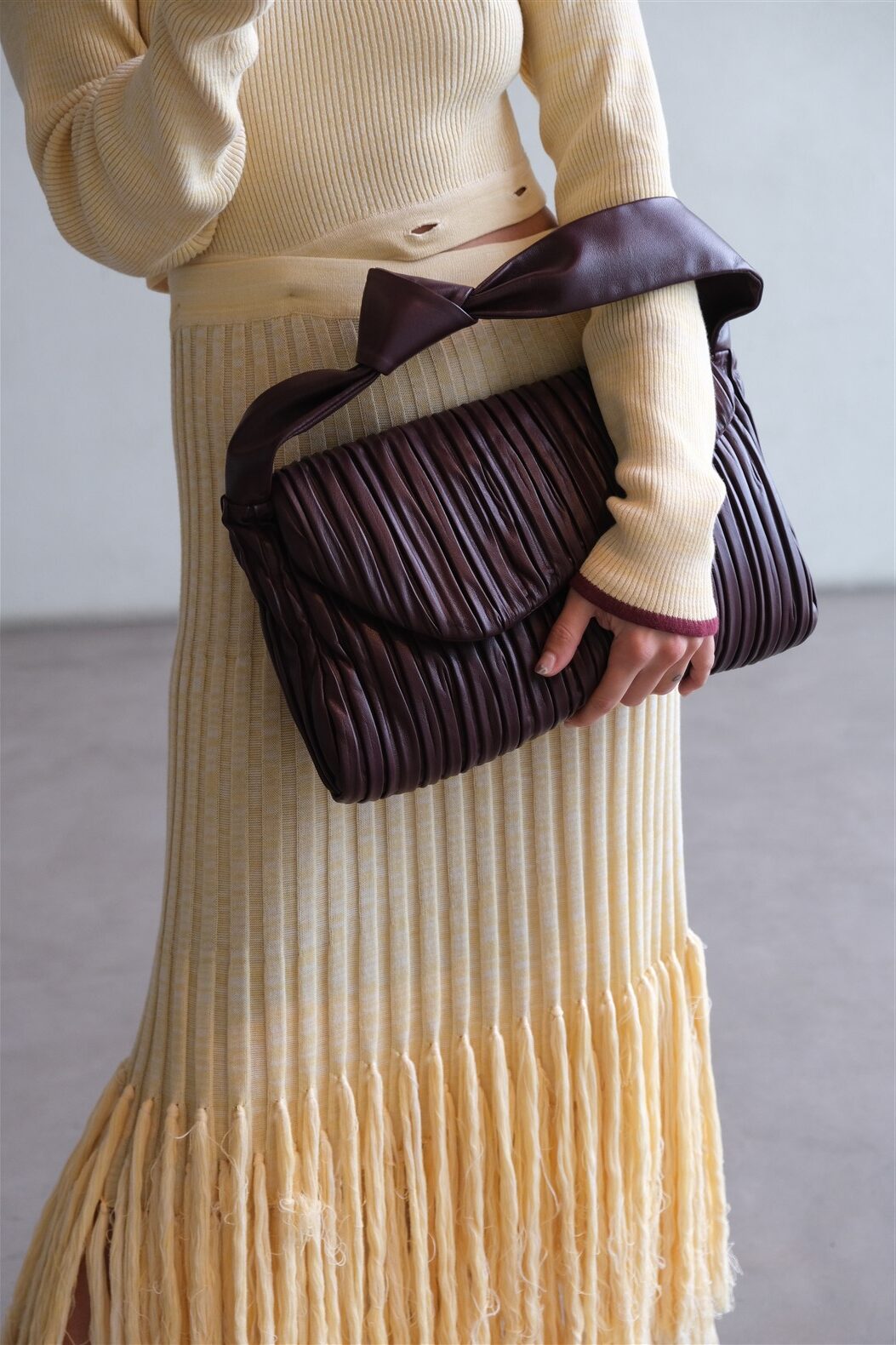 Túi đeo vai cỡ vừa bằng da nappa mềm mại, xếp nếp.