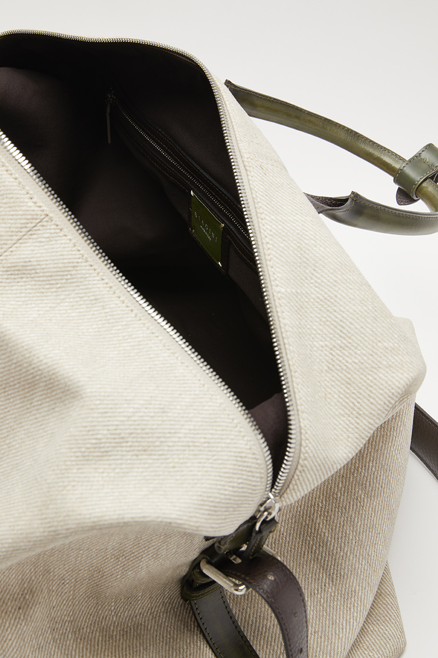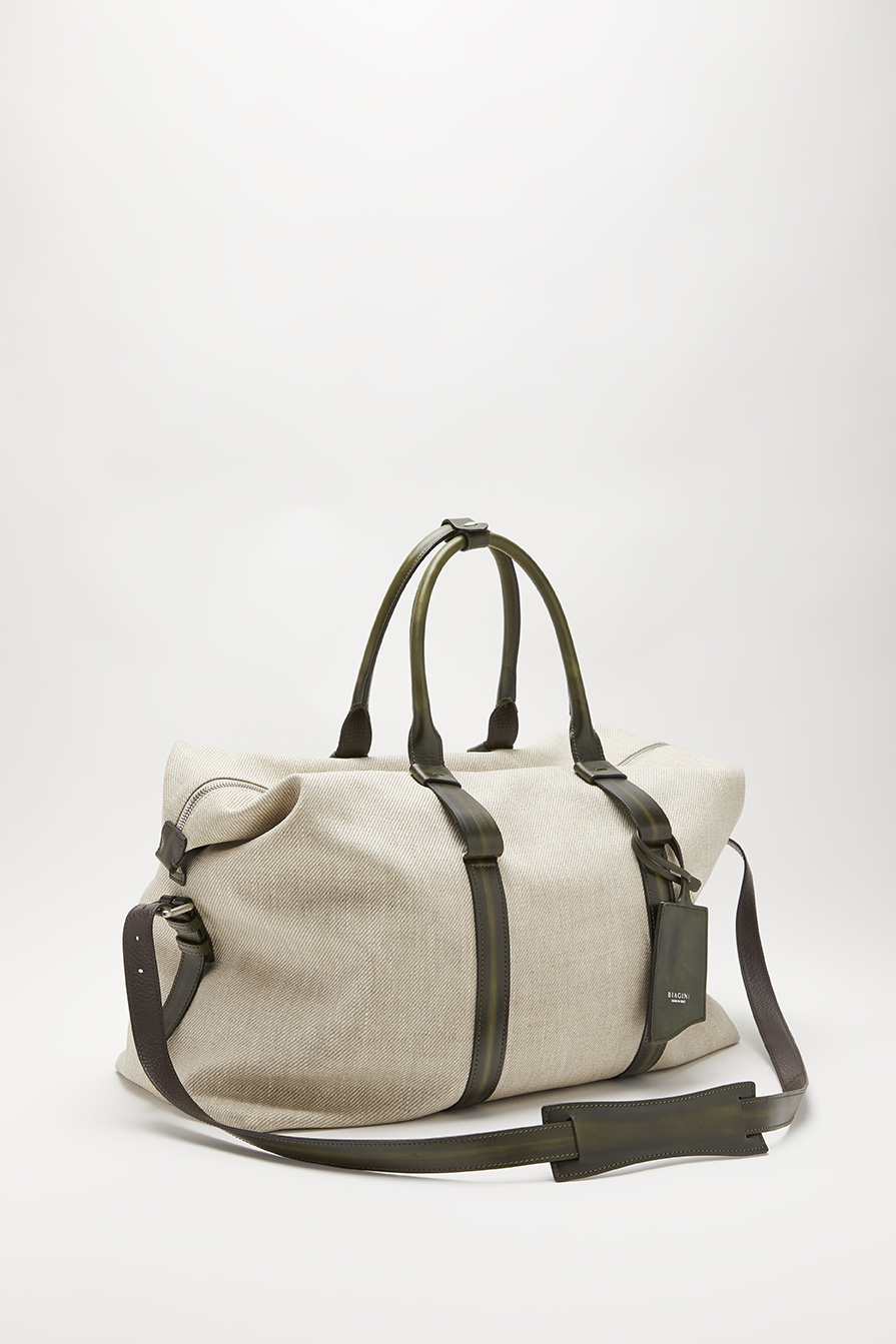 Túi du lịch bằng da và canvas mềm có logo Biagini, bảng tên bằng da và các chi tiết kim loại