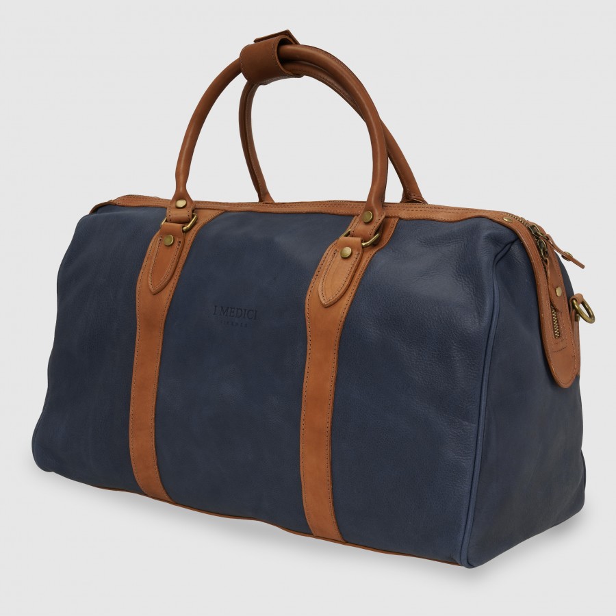 TÚI DU LỊCH DA BÊ MỀM CAO CẤP MÀU XANH JEANS -  MEDICI OF FLORENCE - SẢN XUẤT THỦ CÔNG TẠI ITALIA Hàng sắp về