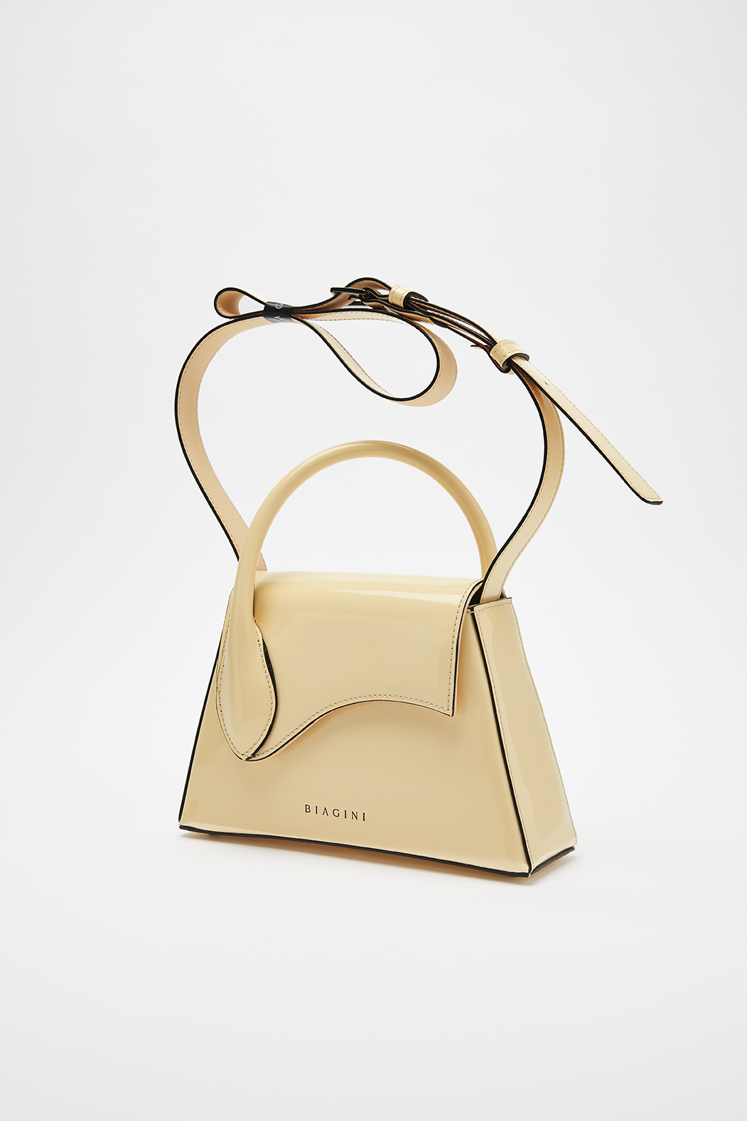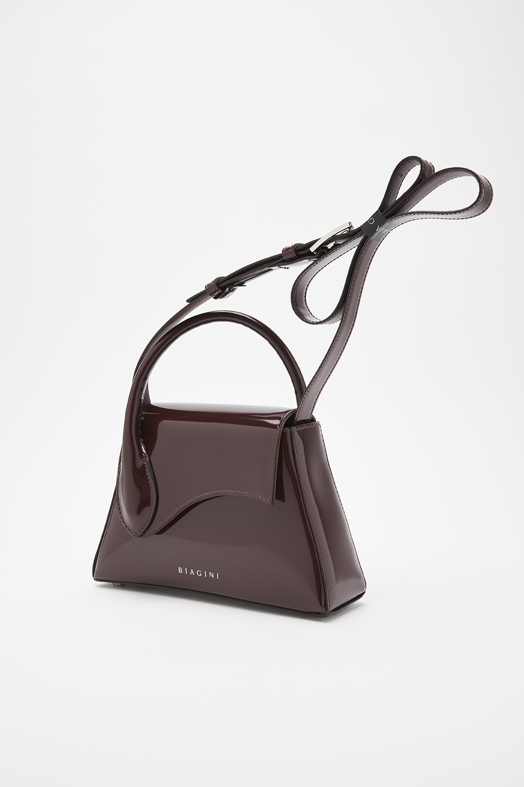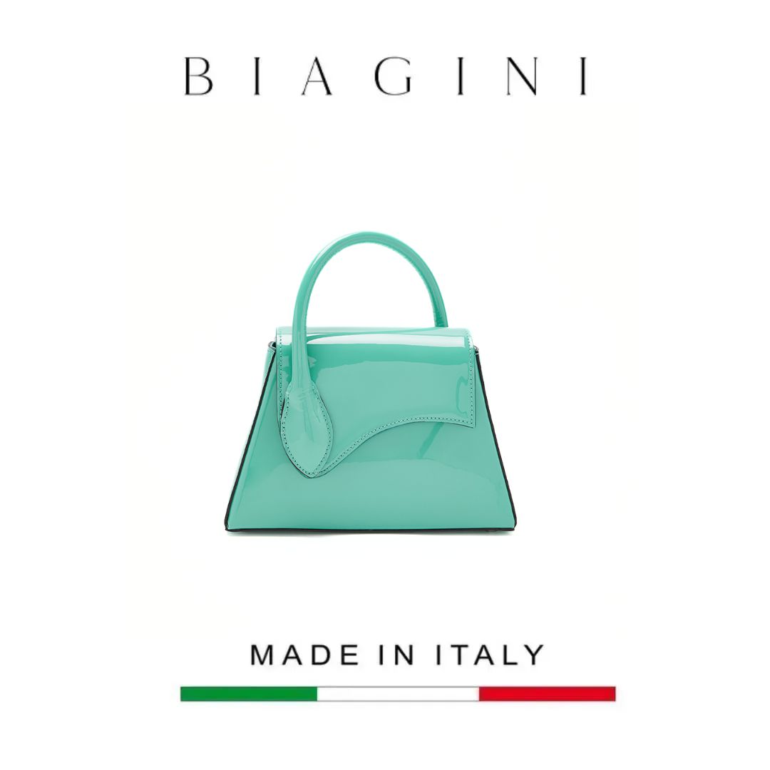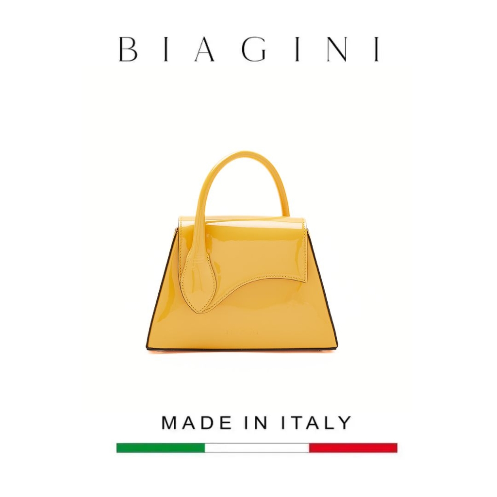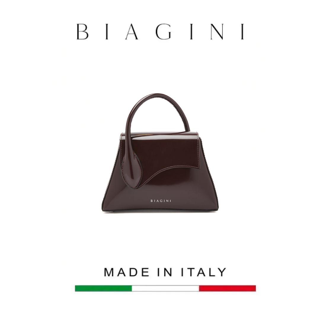 Túi cầm tay bằng da bóng có logo Biagini