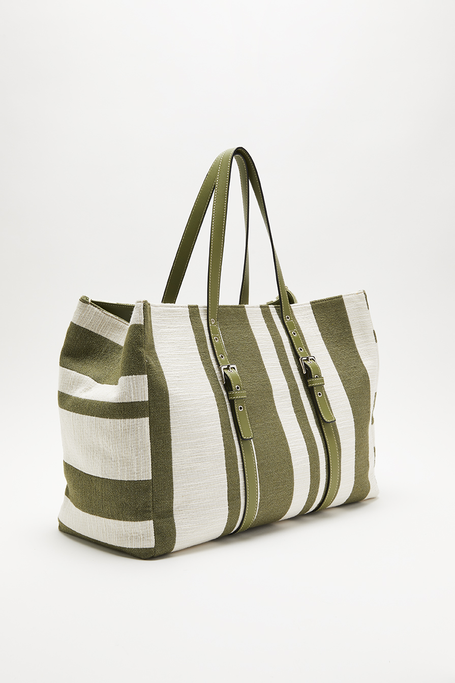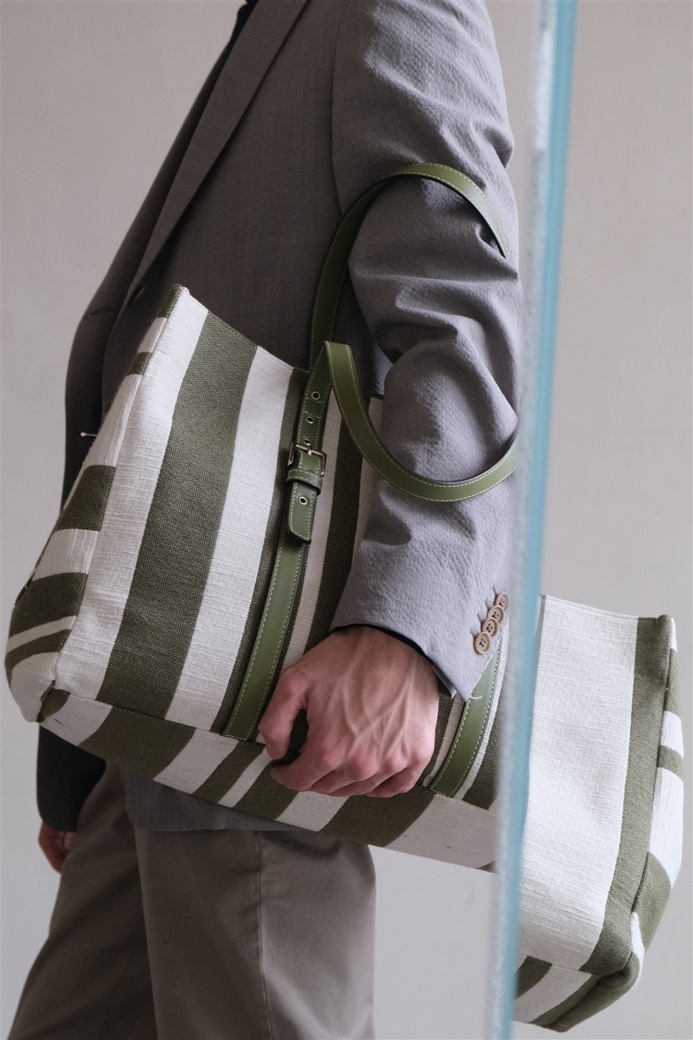Túi cỡ lớn bằng vải cotton và dây đeo vai bằng da bên ngoài có thể điều chỉnh