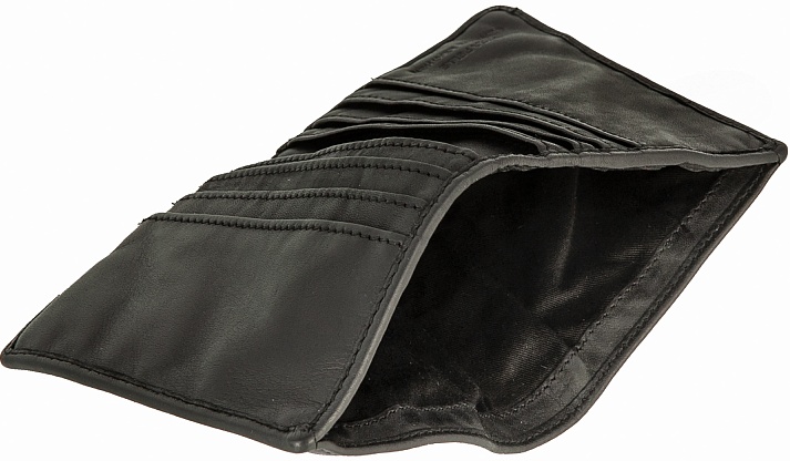 - Ví gập đôi, bên trong có một ngăn đựng tiền giấy và tám ngăn đựng thẻ tín dụng