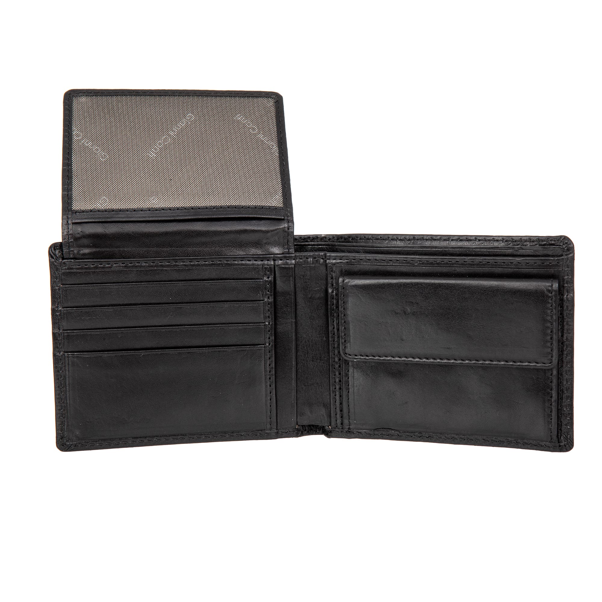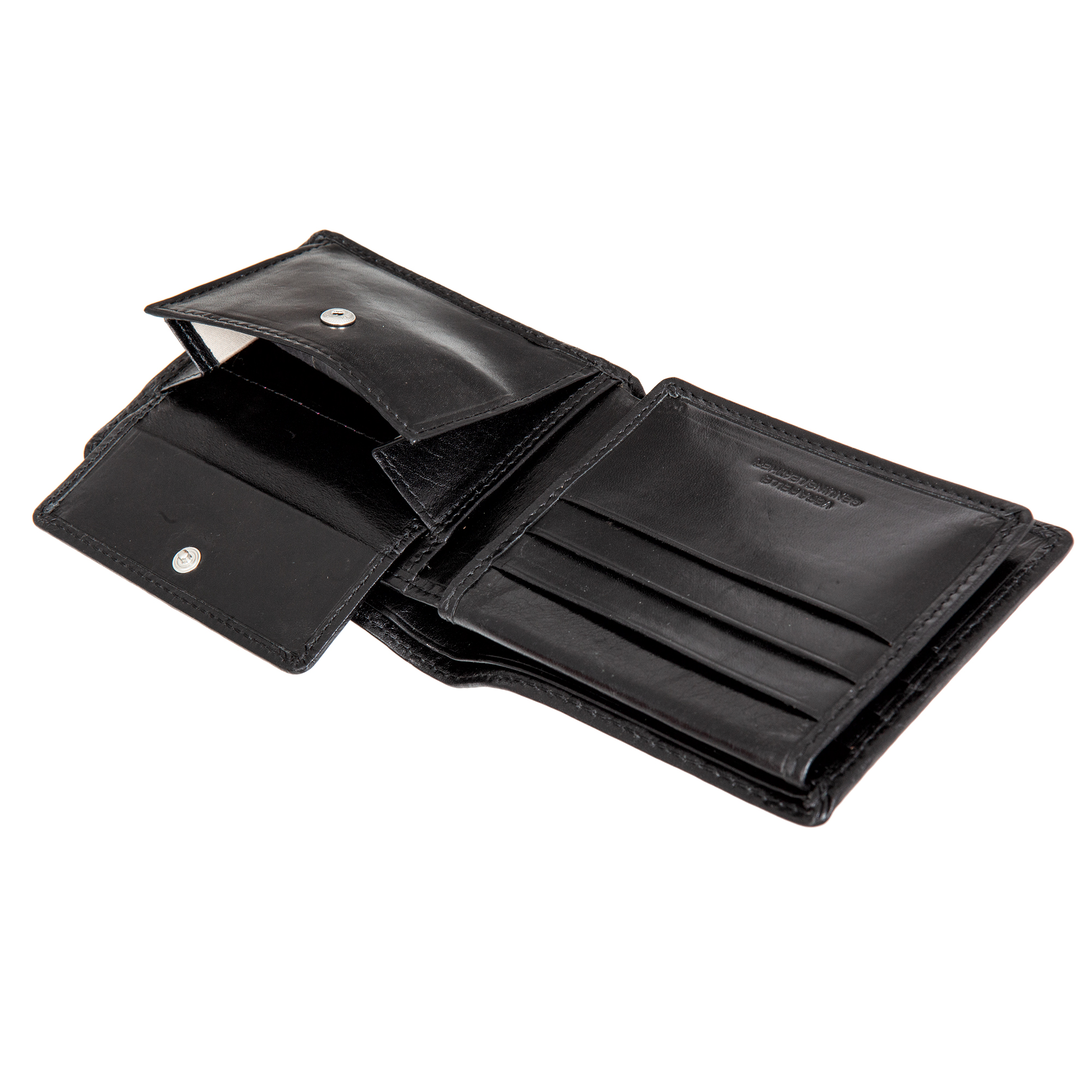 - Bên trong có hai ngăn đựng tiền giấy, một ngăn đựng tiền xu có nút cài, bốn ngăn ẩn, một ngăn lưới và tám ngăn đựng thẻ tín dụng.